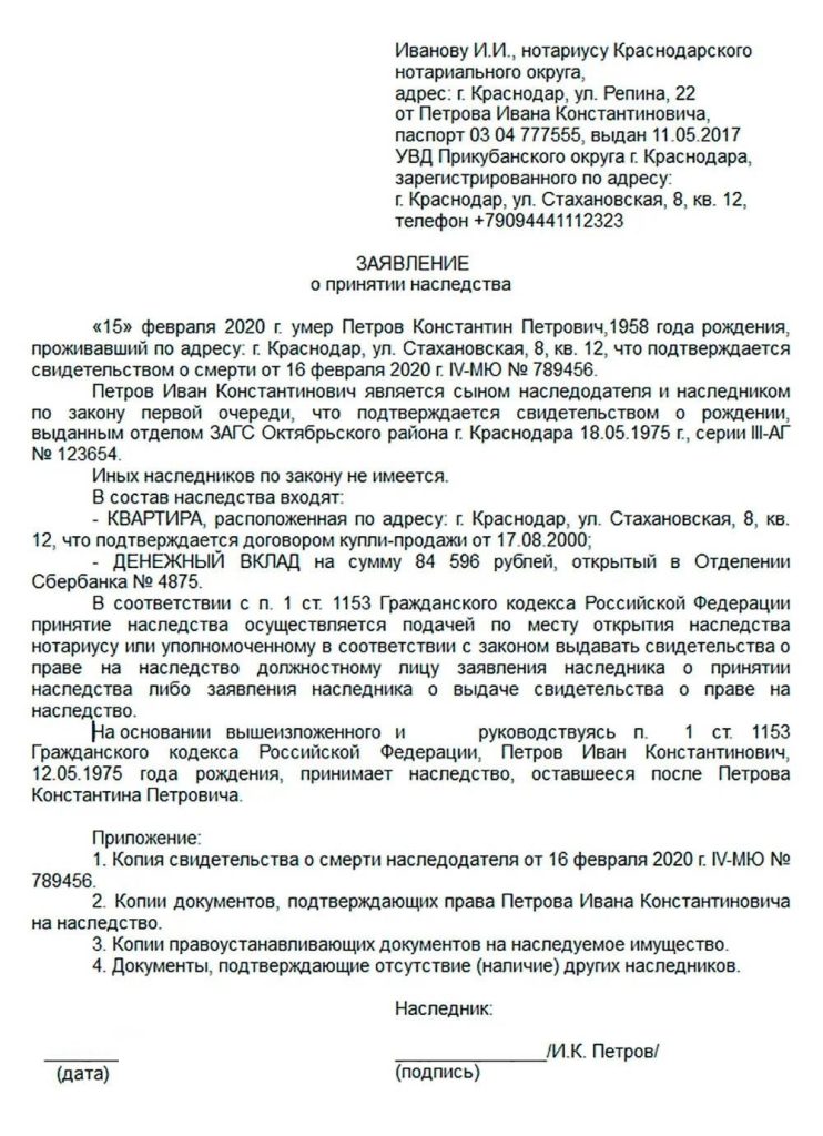 Вот что нужно указать в заявлении о принятии наследства: